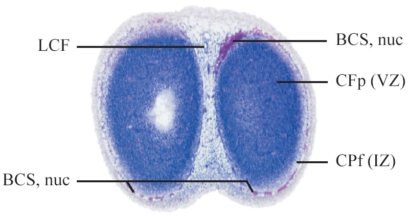 Slides from U. Schambra, coronal cuts with slides at every 5th section, with a hematoxylin and eosin (H & E) stain