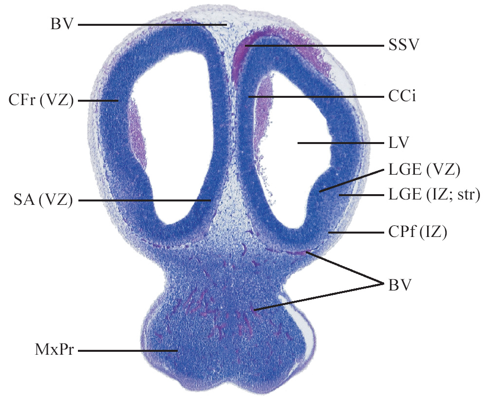 Slides from U. Schambra, coronal cuts with slides at every 5th section, with a hematoxylin and eosin (H & E) stain