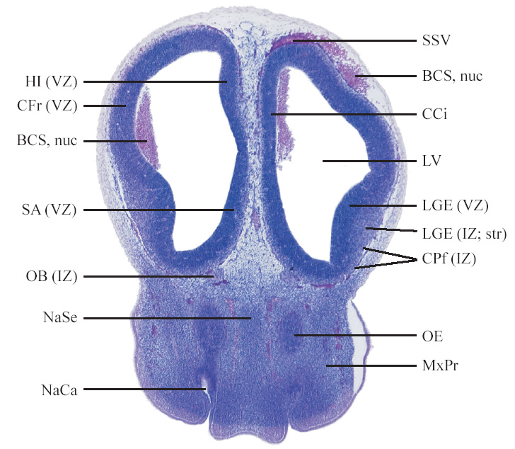 Slides from U. Schambra, coronal cuts with slides at every 5th section, with a hematoxylin and eosin (H & E) stain