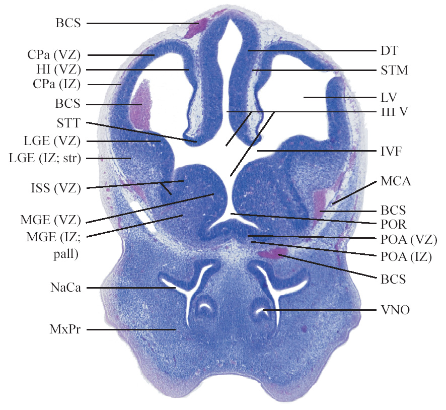 Slides from U. Schambra, coronal cuts with slides at every 5th section, with a hematoxylin and eosin (H & E) stain