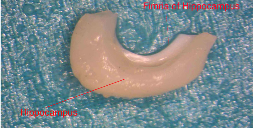 Cut off the fornix and the presubiculum (Prs) to get a clean