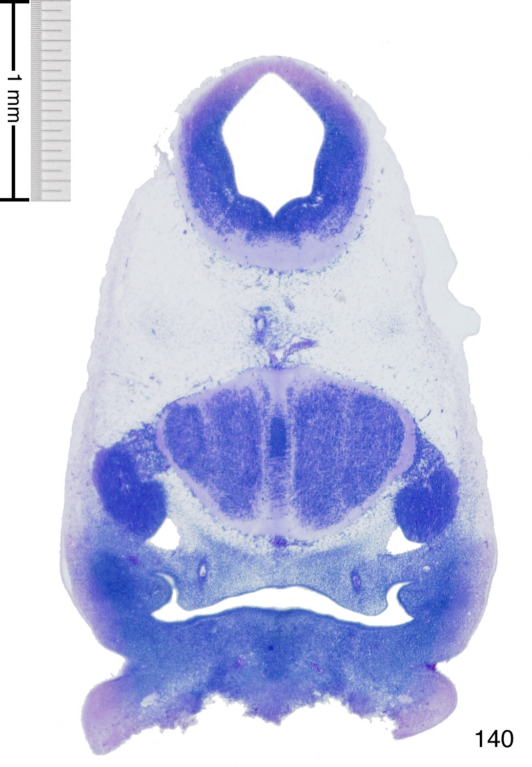 Slides from U. Schambra, coronal cuts with slides at every 5th section, with a hematoxylin and eosin (H & E) stain