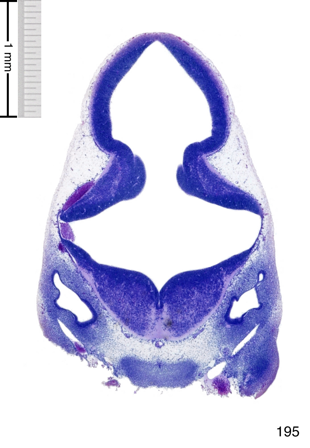 Slides from U. Schambra, coronal cuts with slides at every 5th section, with a hematoxylin and eosin (H & E) stain
