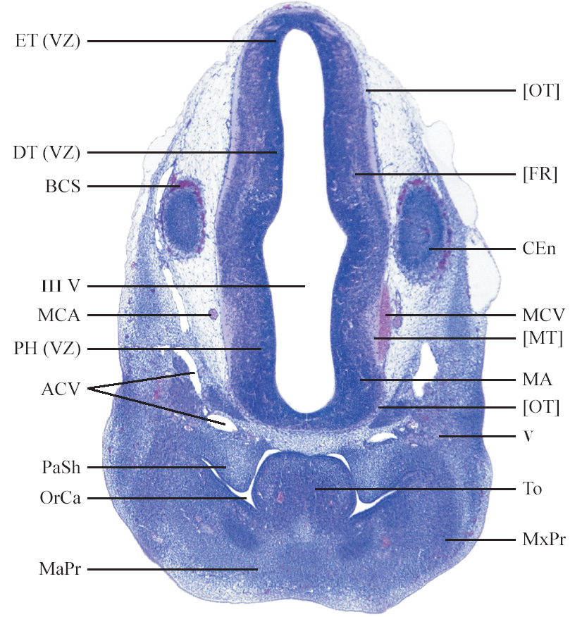 Slides from U. Schambra, coronal cuts with slides at every 5th section, with a hematoxylin and eosin (H & E) stain