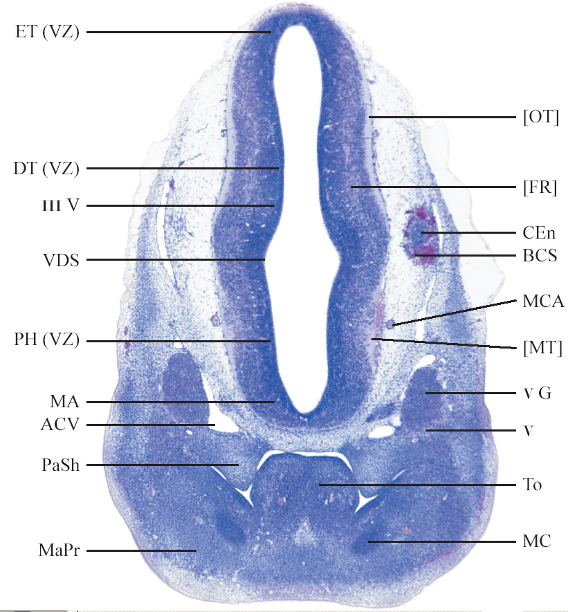 Slides from U. Schambra, coronal cuts with slides at every 5th section, with a hematoxylin and eosin (H & E) stain