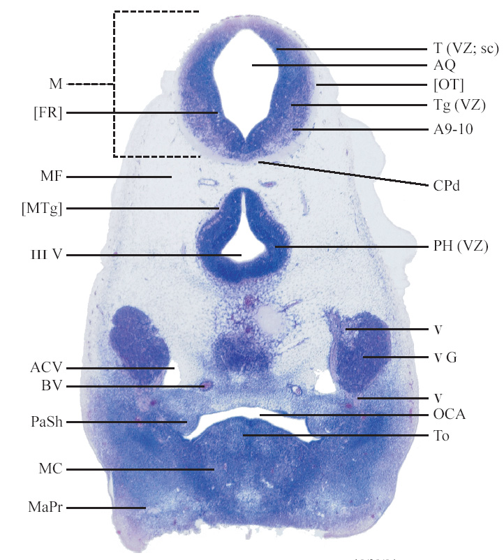 Slides from U. Schambra, coronal cuts with slides at every 5th section, with a hematoxylin and eosin (H & E) stain