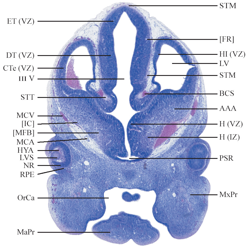 Slides from U. Schambra, coronal cuts with slides at every 5th section, with a hematoxylin and eosin (H & E) stain