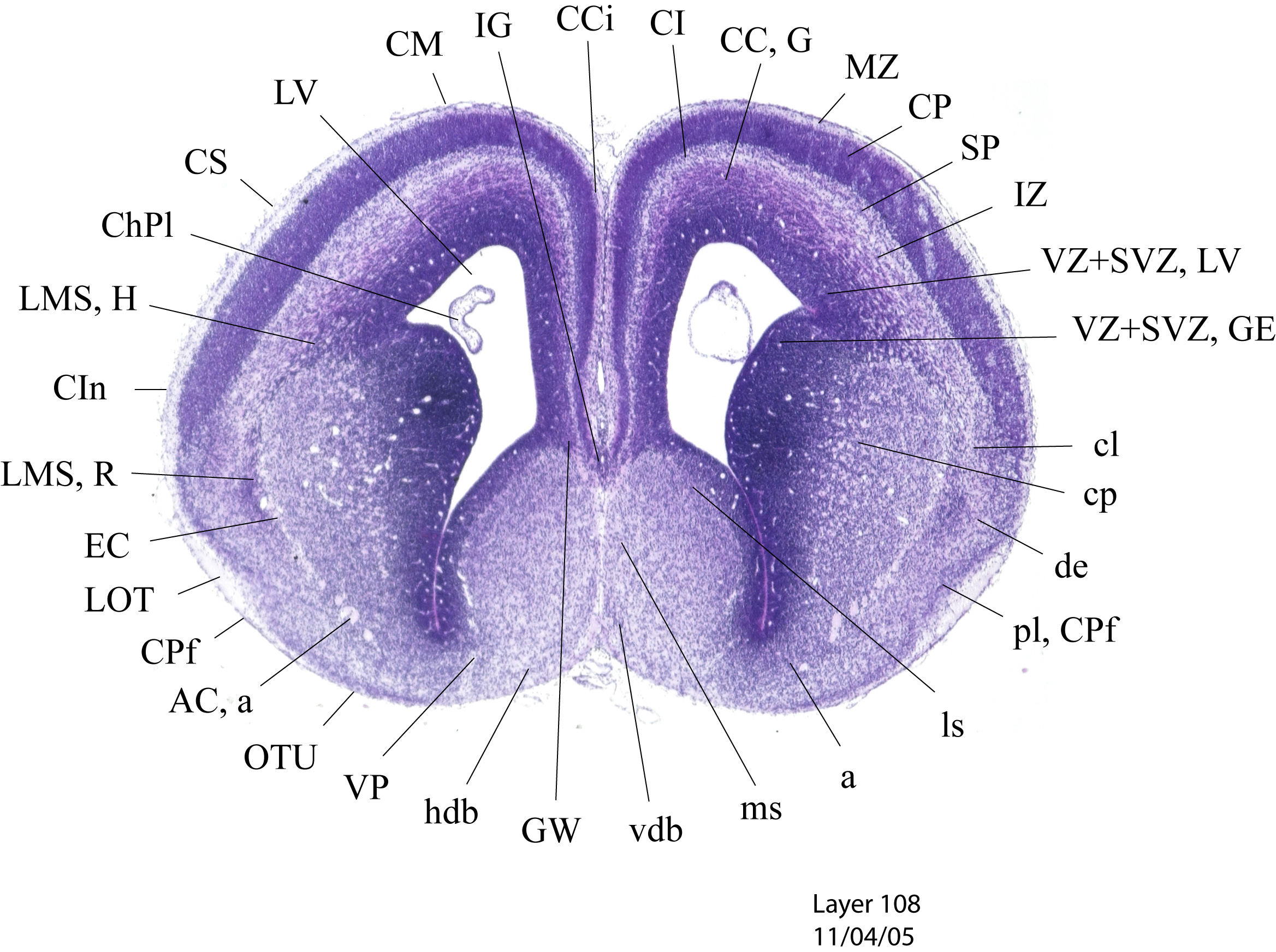 Currently on section: 108 View [ hi-res w/scale bar represent 1mm. ] [ Zoomify ]