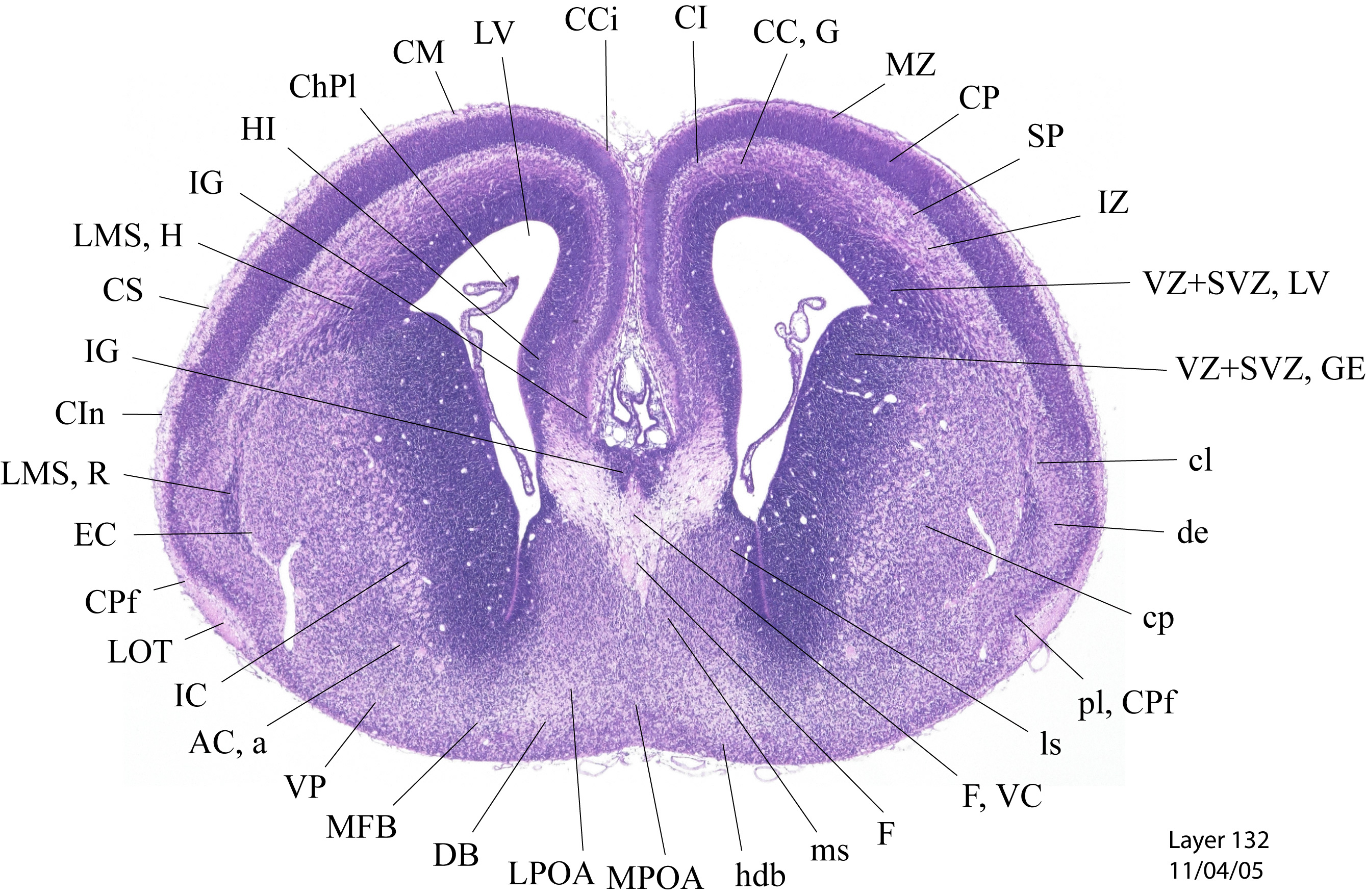 Currently on section: 132 View [ hi-res w/scale bar represent 1mm. ] [ Zoomify ]
