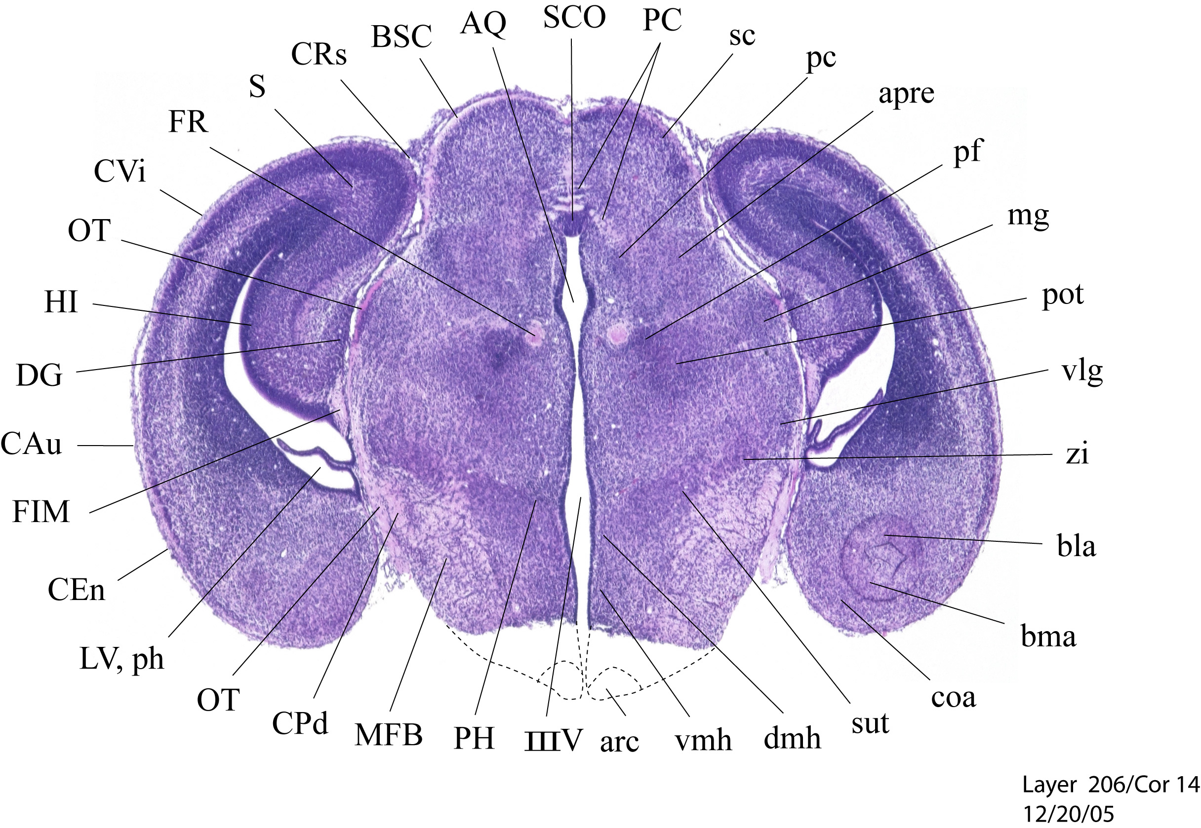 Currently on section: 206 View [ hi-res w/scale bar represent 1mm. ] [ Zoomify ]