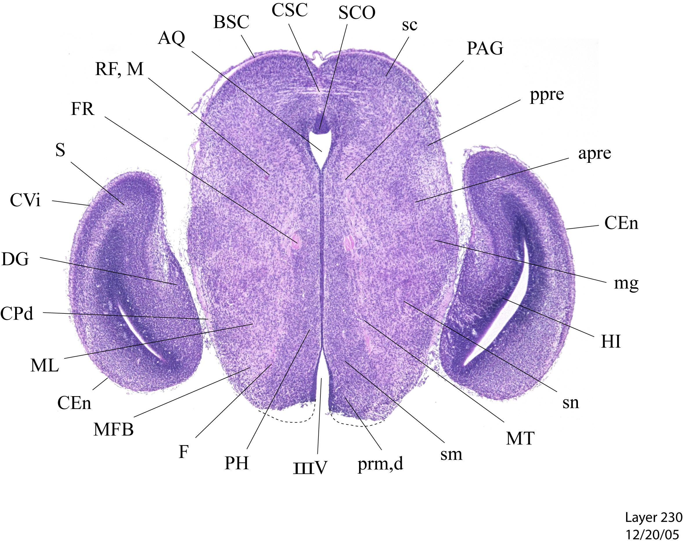 Currently on section: 230 View [ hi-res w/scale bar represent 1mm. ] [ Zoomify ]
