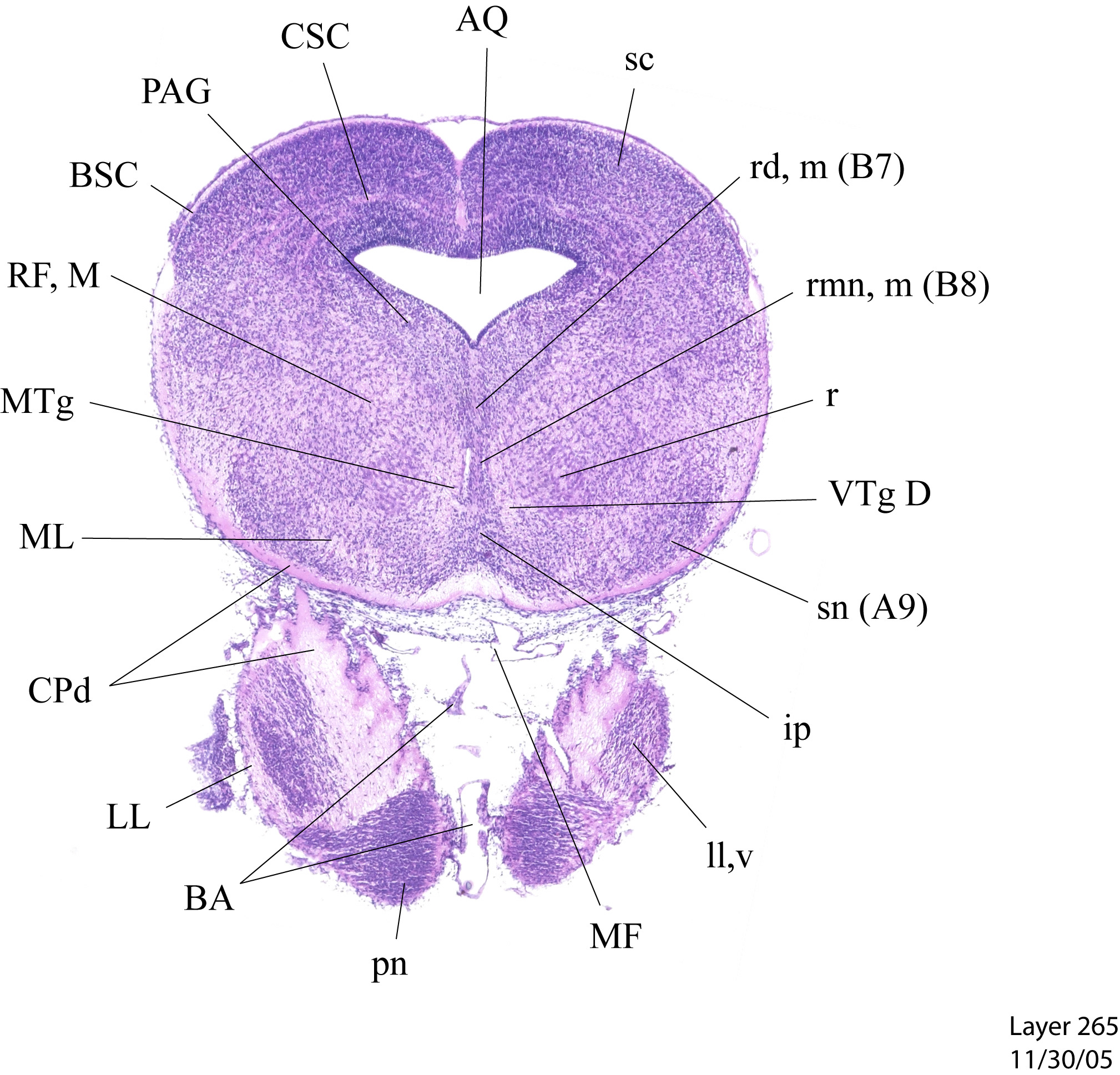 Currently on section: 265 View [ hi-res w/scale bar represent 1mm. ] [ Zoomify ]