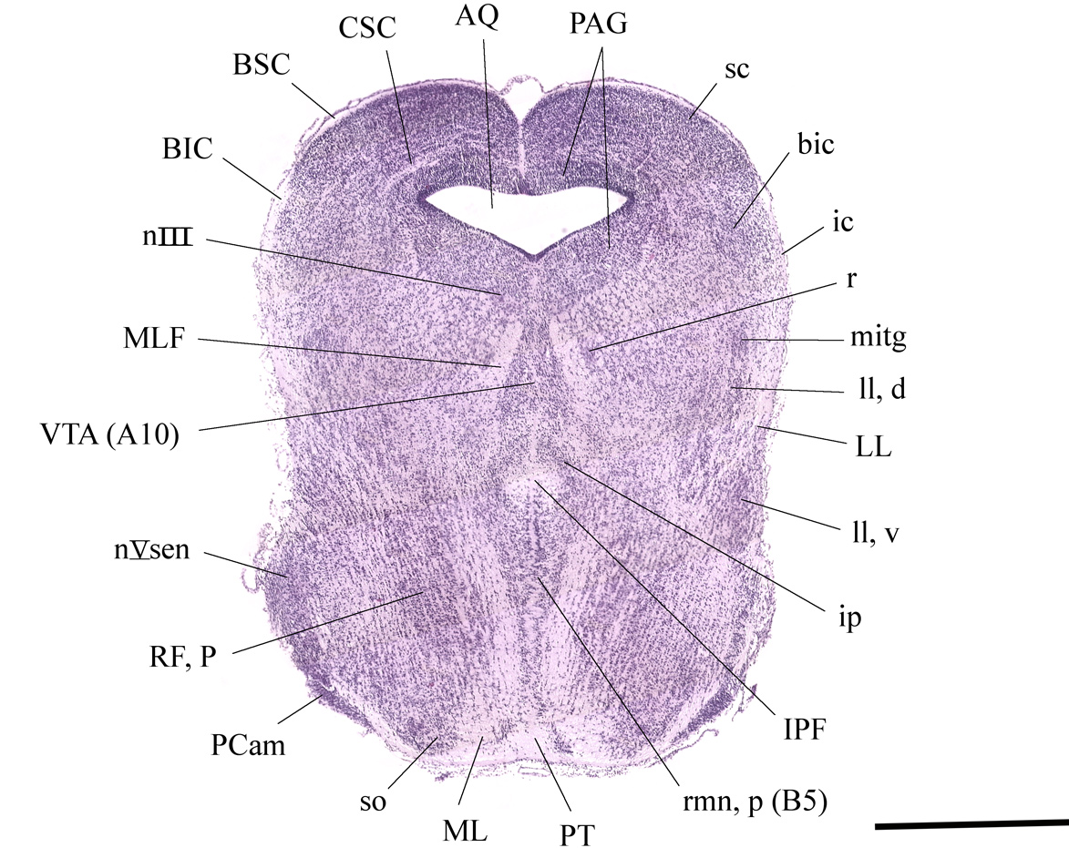 Serontonergic nucleus-midbrain median raphe nucleus (rmn, m)