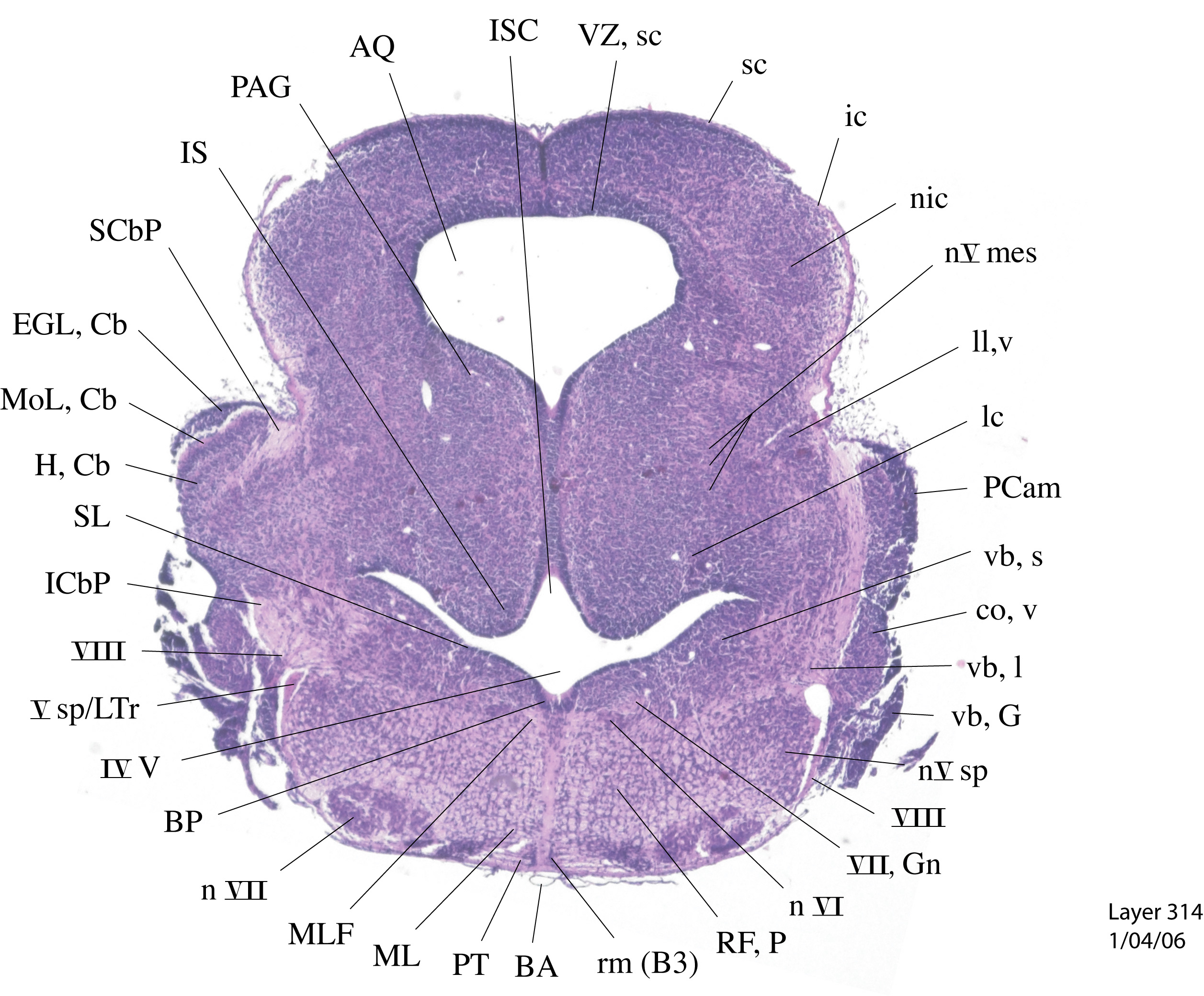 Currently on section: 314 View [ hi-res w/scale bar represent 1mm. ] [ Zoomify ]