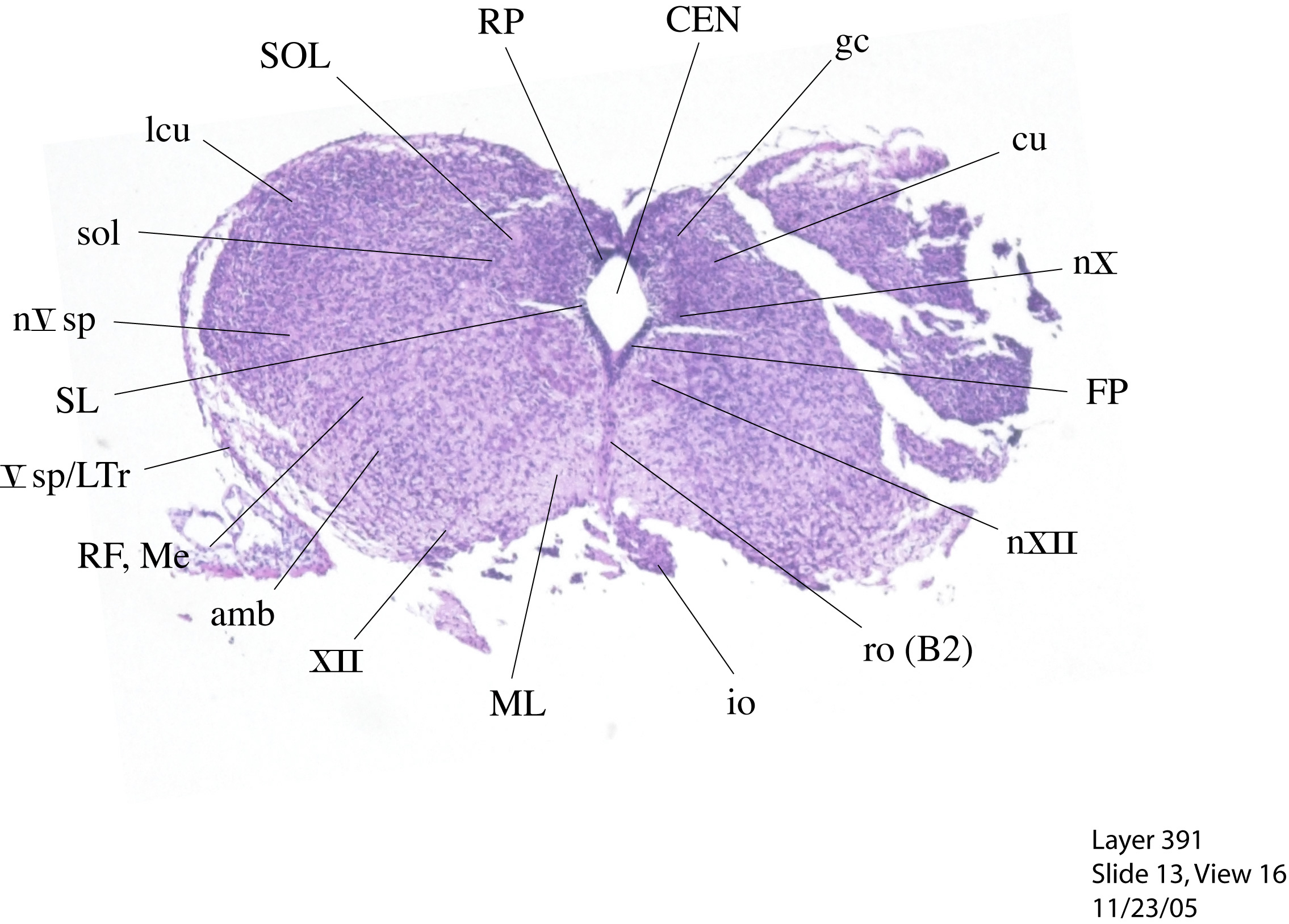 Currently on section: 391 View [ hi-res w/scale bar represent 1mm. ] [ Zoomify ]